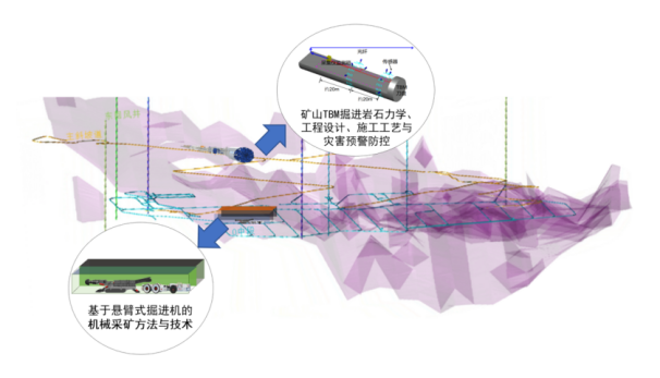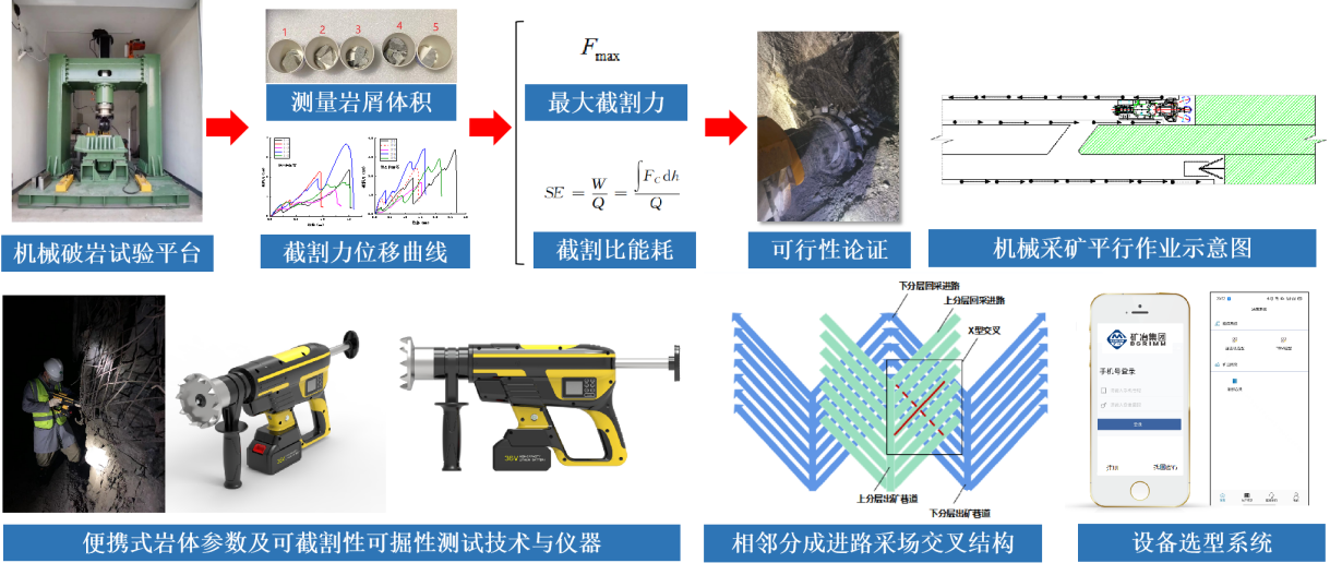 金属非金属矿山“凿岩爆破”开采方式决定了采矿工艺流程无法实现连续作业,而且爆破作业本身具有有害效应与较高安全风险。随着科技水平的发展,煤矿采煤机械、金属非金属矿山采掘机械及全断面隧道掘进机(TBM)等装备与技术相互影响渗透,机械破岩装备向着行业、技术融合的趋势进步,地下矿山迎来了由传统凿岩爆破开采向非爆机械连续开采的新跨越。机械连续开采技术是球友会平台的重点发展方向。技术方向在机械刀具破岩力学及优化、机械采矿岩石力学、机械采矿工艺、机械采矿机电一体化选型配套、机械开挖岩体稳定性控制及安全保障技术、金属非金属专用机械采掘装备等方面取得了众多创新研究成果,研发形成多项自主知识产权的新一代机械采矿装备及配套产品,构建出一套机械连续采矿的基础理论与技术体系。自主研发的机械破岩试验平台、机械破岩装备选型系统、新型机械破岩悬臂式采矿机、便携式可截割性测试分析仪等,已在众多项目中起到关键支撑作用,并在国内多家地下金属非金属矿山中实现了推广与应用。